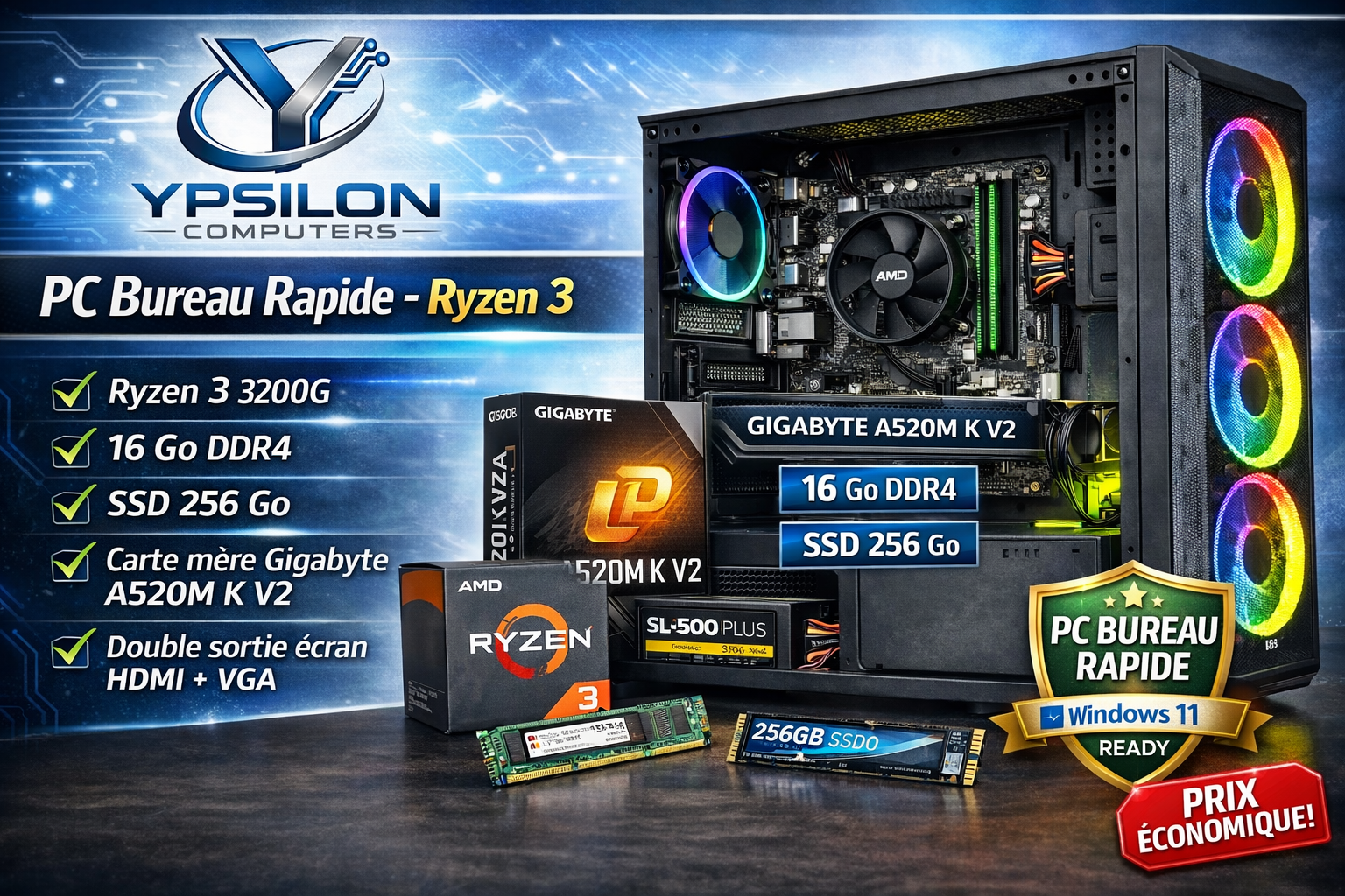 PC Bureau Économique – Ryzen 3 3200G • 16 Go • SSD 256 Go